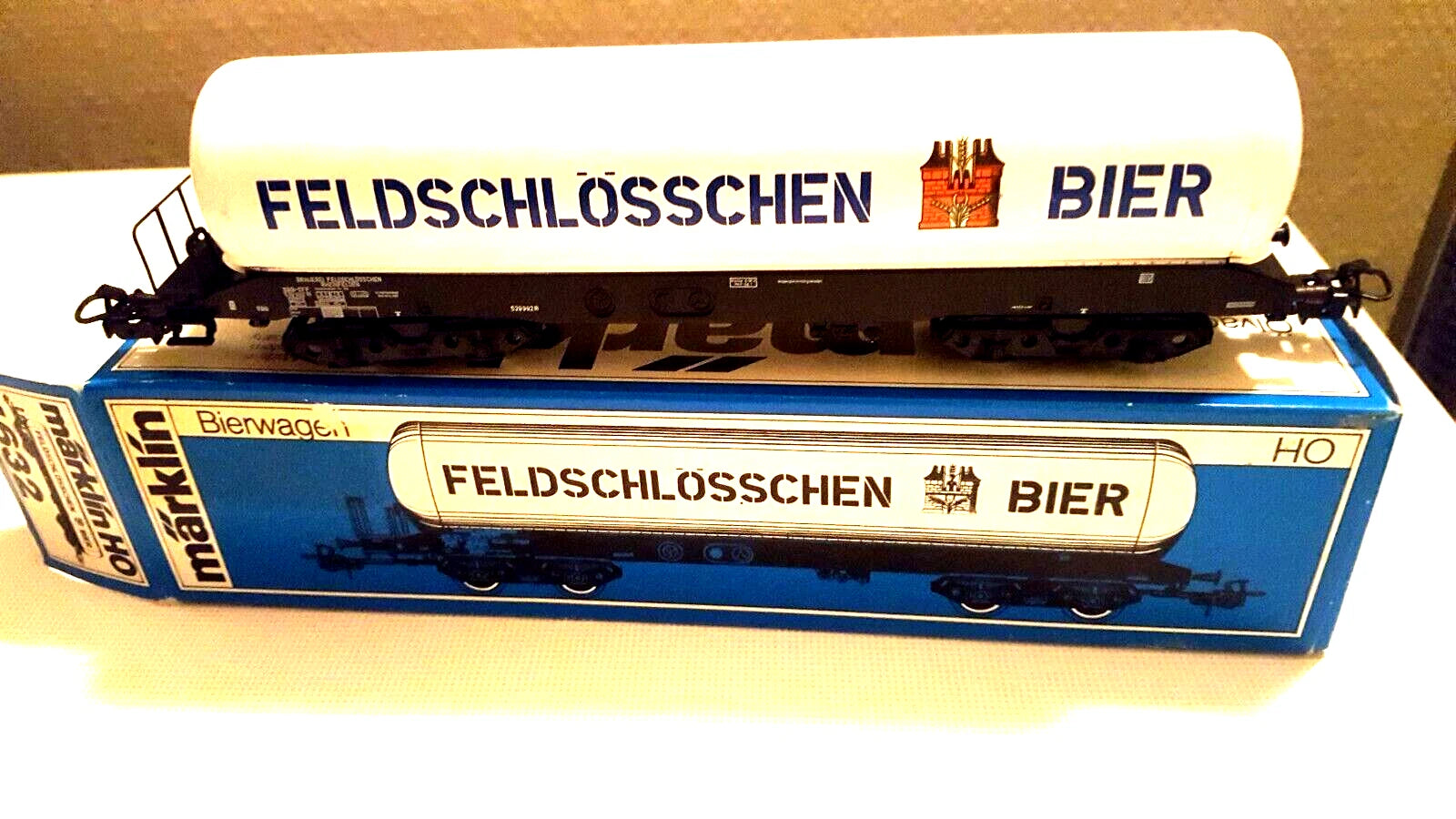 Here is a lot of 1 piece HO Marklin 4632 - Big Tank car "Feldschlossen beer", of the DB, in exellent condition, WITH original box. Buyer pay all shipment-, package-, handle-, bank transfert costs. Weight all included : ± 0,450 kg.