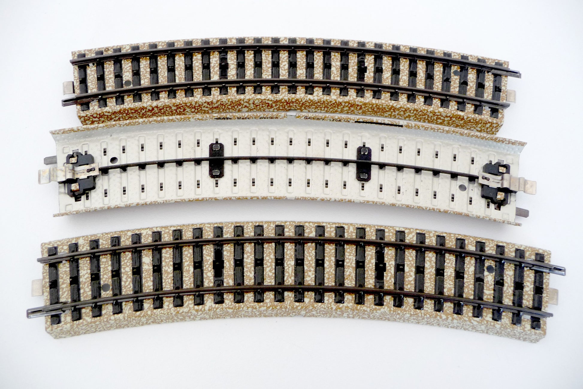 Vous enchérissez sur 3 x Marklin HO 5206 - Voies courbes à utilisé avec aiguillages 5202-5221-5214, dans un bon état, sans la boite original. L’Acheteur payer les frais du transport, emballage, manipulation et banque transfert. Poids toute compris : ± 340 gr.