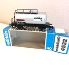 Here is a lot of 1 piece HO Marklin 4532.1 - Tank car NYNAS-Brandfarligt, of the SJ, white/blue color, in good condition, WITH original box. Buyer pay all shipment-, package-, handle-, bank transfert costs. Weight all included : ± 0,450 kg.