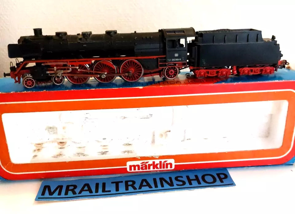 Here is a lot of 1 x Marklin HO 3085 - Steamlocomotif with tender, type BR003, analoge, in exellent condition, function perfect, with original box. Shipping, packaging, treatment,-bank transfer costs are payable by the buyer. All included weight: ± 800 gr.