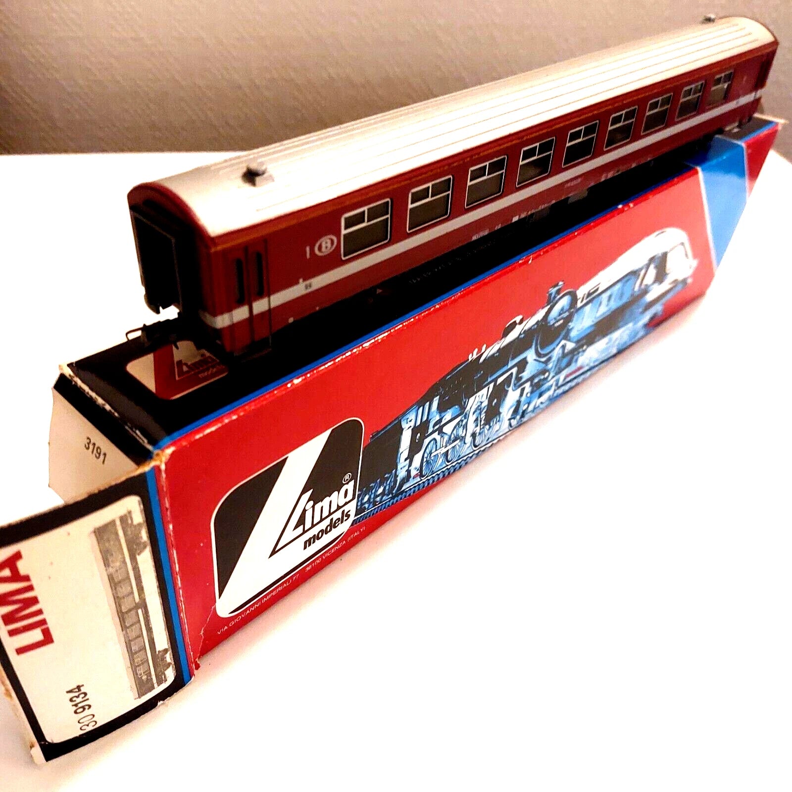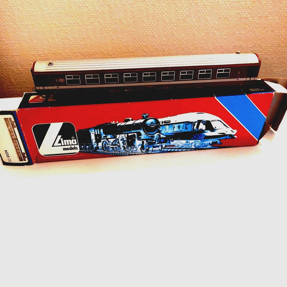 Here 1 piece HO Lima 309134 – Belgian passenger coach 1e classe, of the NMBS, with original box. Buyer pay all shipment-, package-, handle-, bank transfert costs. Weight all included : ± 1,5 kg.