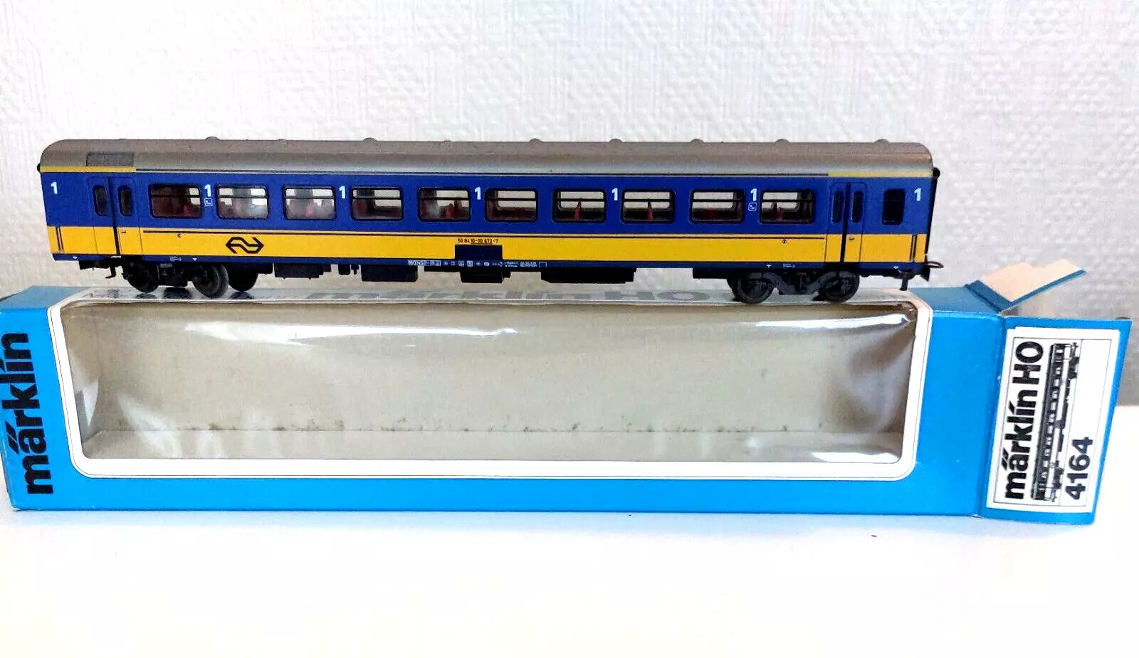 Text Francais :Vous enchérissez sur 1 x Marklin HO 4164 - Voiture voyageur Hollandais 1iere cl., du NS, dans un état comme NEUF, avec la boîte originale. L’Acheteur payer les frais du transport, emballage, manipulation et banque transfert. Je décline toute responsabilité en cas de degats ou perte par les service de la Post si l’option Taxipost Secur n’est pas etait prise par l’acheteur. Poids toute compris : ± 0,450 kg.