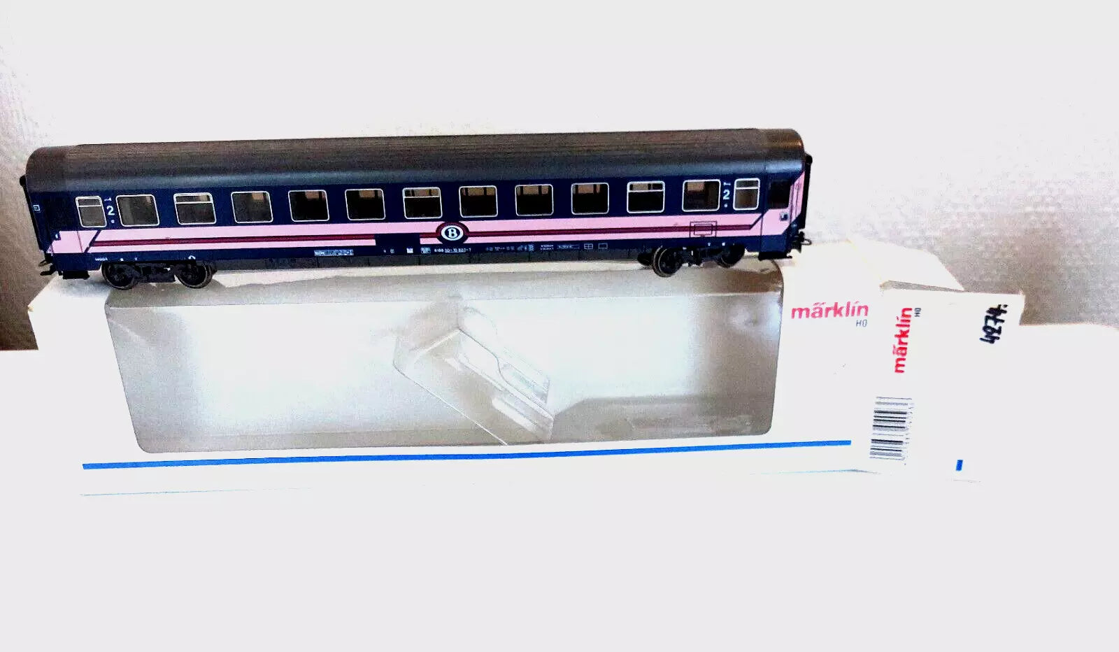 1 x Marklin HO 4274 – Belgische slaapwagen, van de NMBS, in mooie staat, met originele doos.Verzendings-, verpakking-, behandelings,- bank transfert kosten zijn ten laste van de koper, verzending op risico van de koper. Gewicht alles inbegrepen : 0,450 kg.