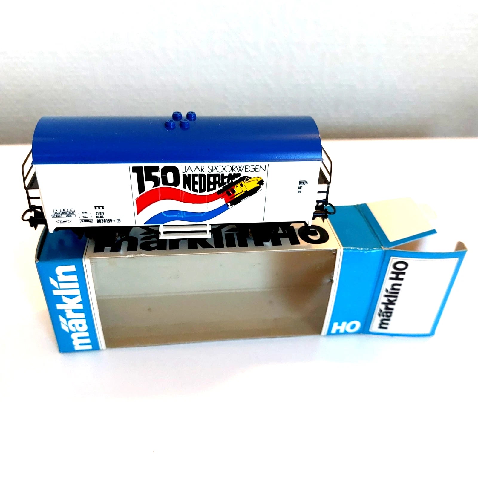 1 x Marklin HO 4541 – 150 Jaar Nederlandse Spoorwegen gesloten goederenwagen, van de NS, in nieuwe staat, met originele doos.Verzendings-, verpakking-, behandelings,- bank transfert kosten zijn ten laste van de koper, verzending op risico van de koper. Gewicht alles inbegrepen : 350 gr.