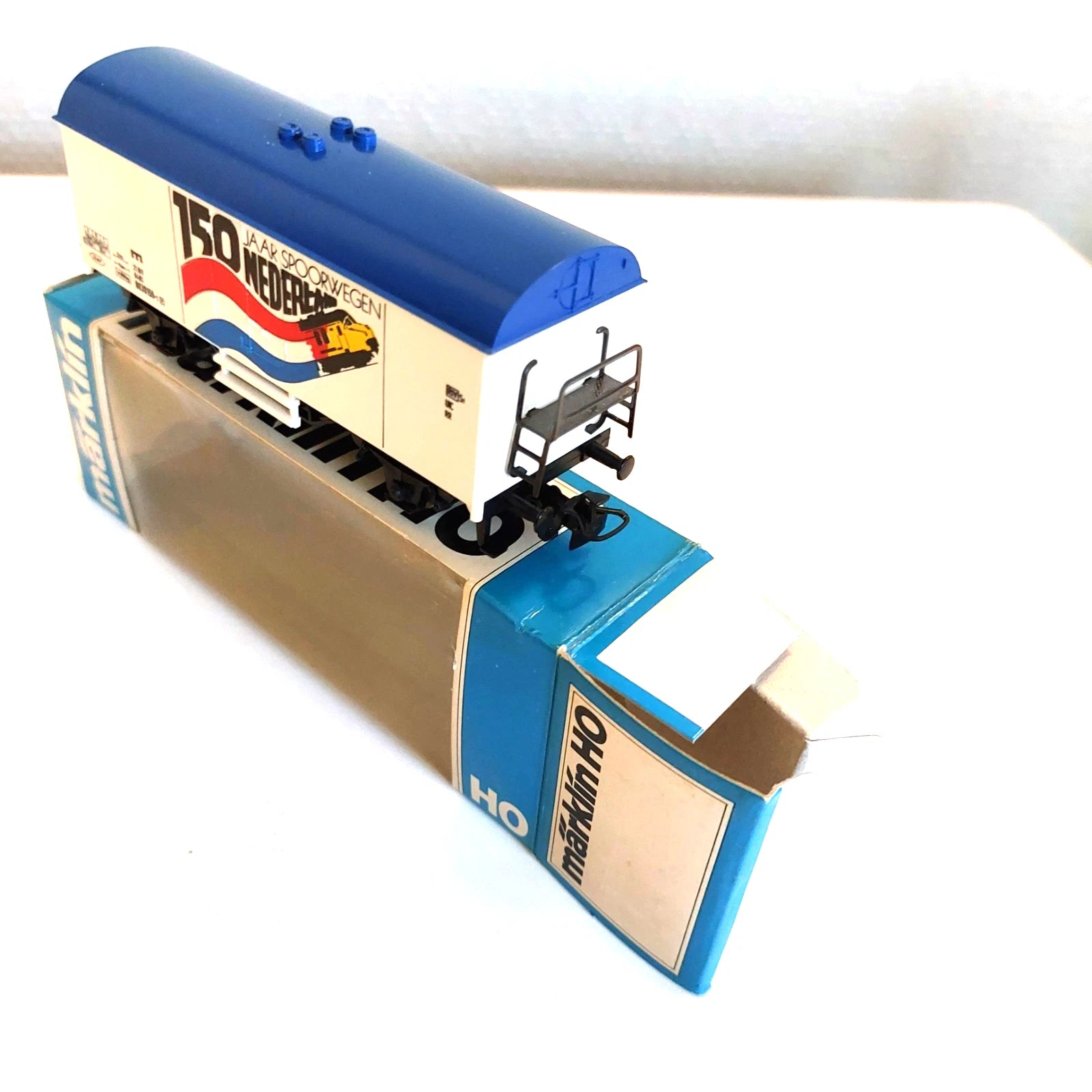 Vous enchérissez sur 1 x Marklin 4415 HO - Wagon de marchandises fermè "150 ans des chemins de fer Néerlandais, du NS, dans un état neuf, avec la boîte originale. L’Acheteur payer les frais du transport, emballage, manipulation et banque transfert. Je décline toute responsabilité en cas de degats ou perte par les service de la Post si l’option Taxipost Secur n’est pas etait prise par l’acheteur. Poids toute compris : ± 350 gr.