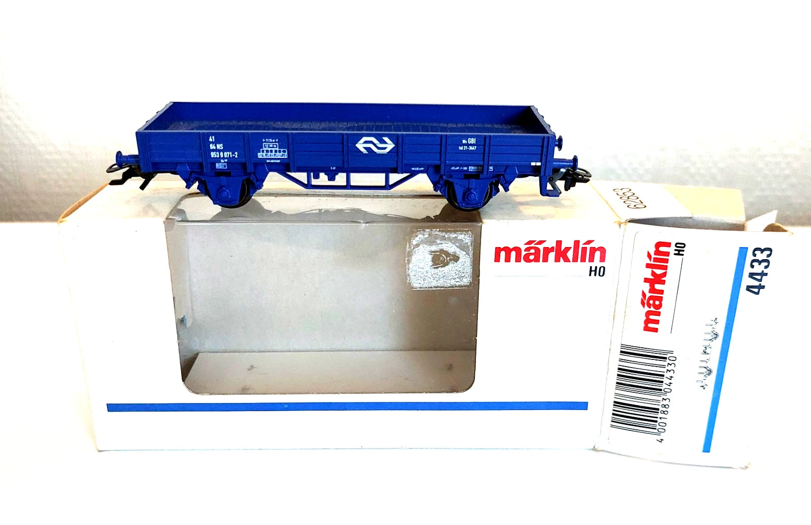 Here is a lot of 1 piece HO Marklin 4433 - Low-sided wagon, in new condition, of the NS, blue, with original box. Buyer pay all shipment-, package-, handle-, bank transfert costs. Weight all included : ± 0,350 kg.