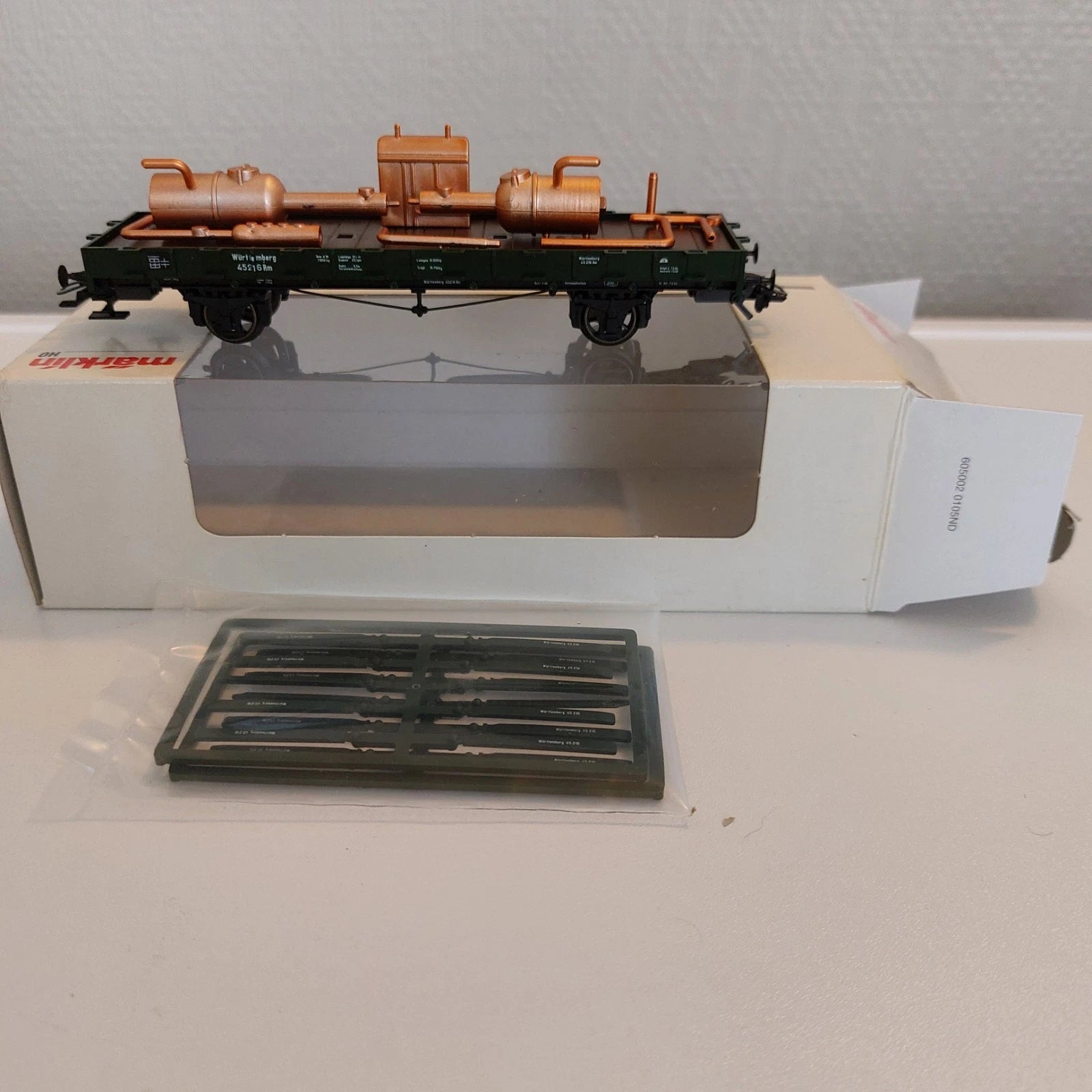 Here is a lot of 1 piece HO Marklin 46364 - Würtrmberg Rungenwagen, der K.W.St.E., in new condition, with original box. Buyer pay all shipment-, package-, handle-, bank transfert costs. Weight all included : ± 0,350 kg.