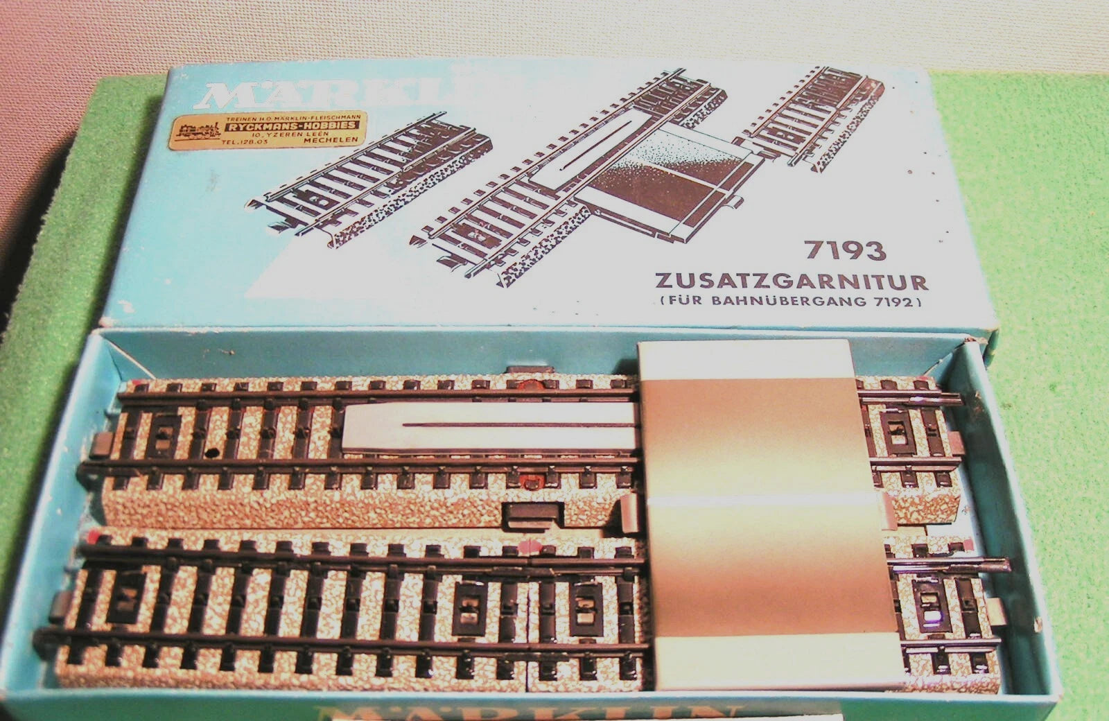 Here is a lot of 1 x 7193 HO Marklin - Set Contact tracks for level passing 7192, for M-tracks, in good condition, WITH original box. Buyer pay all shipment-, package-, handle-, bank transfert costs. Weight all included : ± 340 gr.