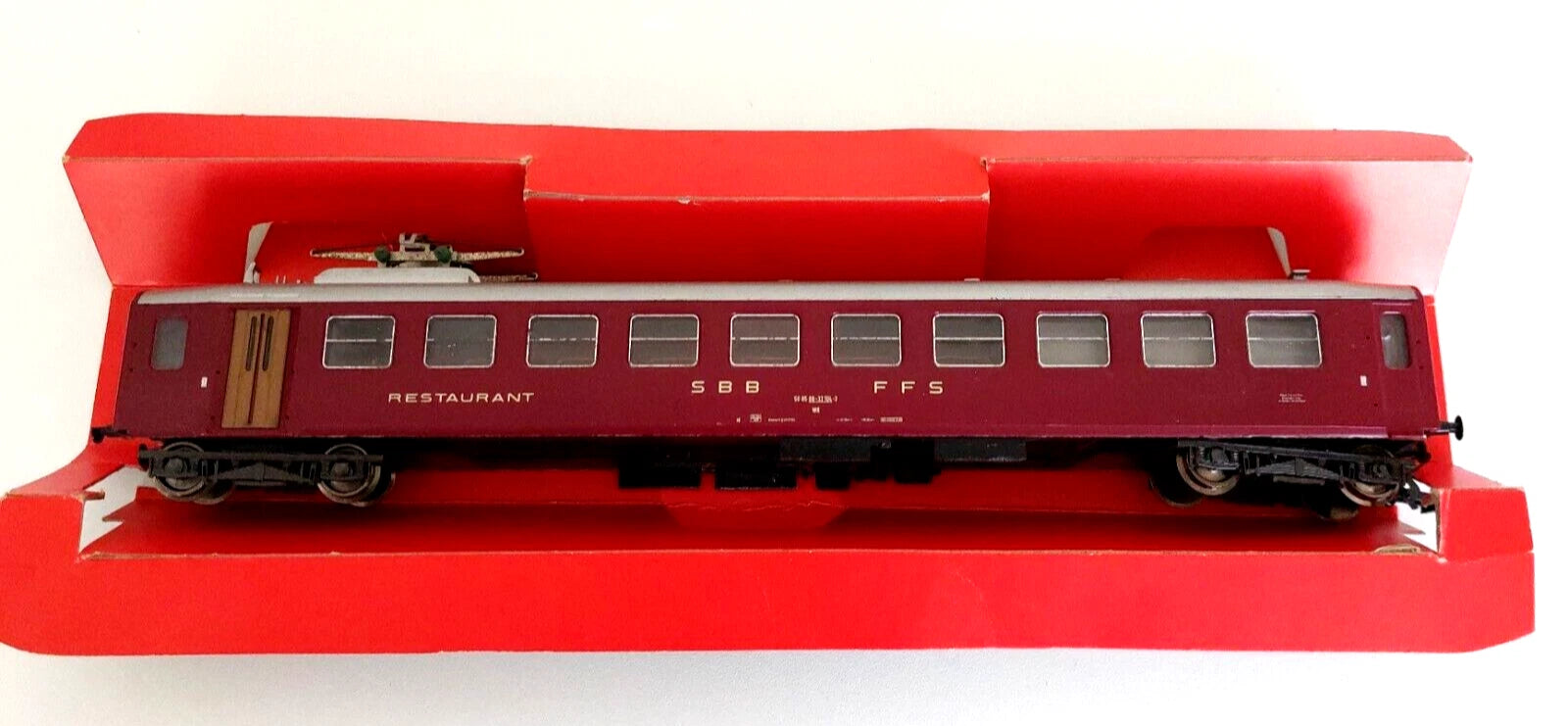 Sie bieten hier für ingesamt 1 Stück HO Liliput - Restaurantwagen mit stromabnehmer, der SBB-FFS, in einem guthem Zustand, ohne original karton. Kunde Bezahlung, Die aller Versand-, paket-, behandelung-, und bank transfert koste. Gewicht alles in : 345 gr.