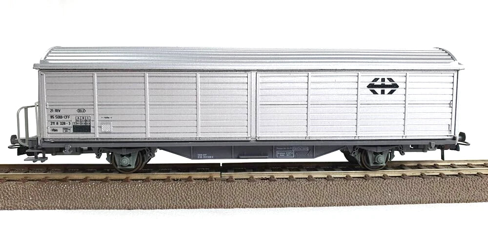 Here is a lot of 1 piece HO Roco 4311 - Helvetian Closed Freight car, 2 axis, of the SBB, silver color, also for Marklin, in as new condition, WITH original box. Buyer pay all shipment-, package-, handle-, bank transfert costs. Weight all included : ± 0,450 kg.
