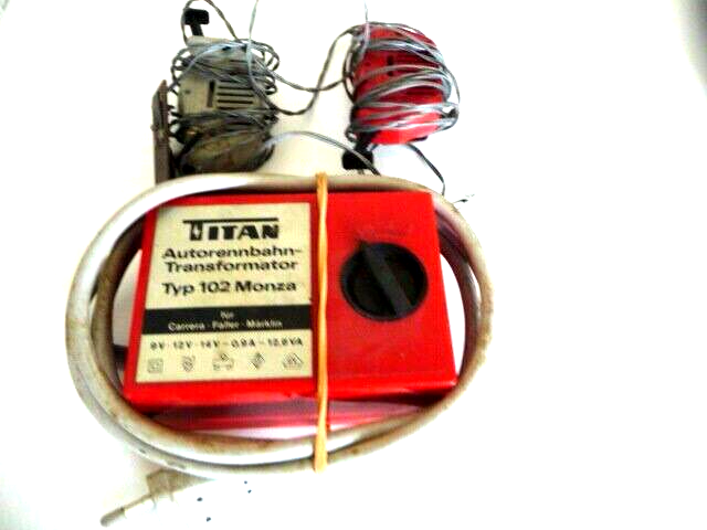 1 x HO Titan Monza type 102 - Transformateur pour circuit de voitures, dan, avec 2 appareils pour rouellé avec des voitures un bon etat(testé), sans la boîte originale. L’Acheteur payer les frais du transport, emballage, manipulation et banque transfert. Poids tout compris = ± 1,1 kg.